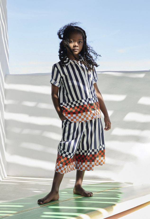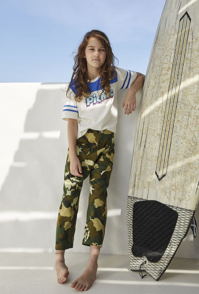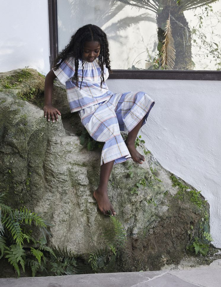 No MINI as estampas exclusivas do ateliê da marca aparecem com força nos looks tal mãe tal filha, como nos conjuntos “ondas” blusa e calça sustentável de linho feita com fibras provenientes de madeira de reflorestamento ou na versão “estampa quadriculada” PB, assim como a calça de corte reto militar em composição com a t-shirt Picnic. As estampas “statement” onça no conjunto camisa e calça e as opções xadrez em tons rosa e lilás no vestido de alça combinando com a linha de beachwear MINI nos lembram de não se levar tão a sério!