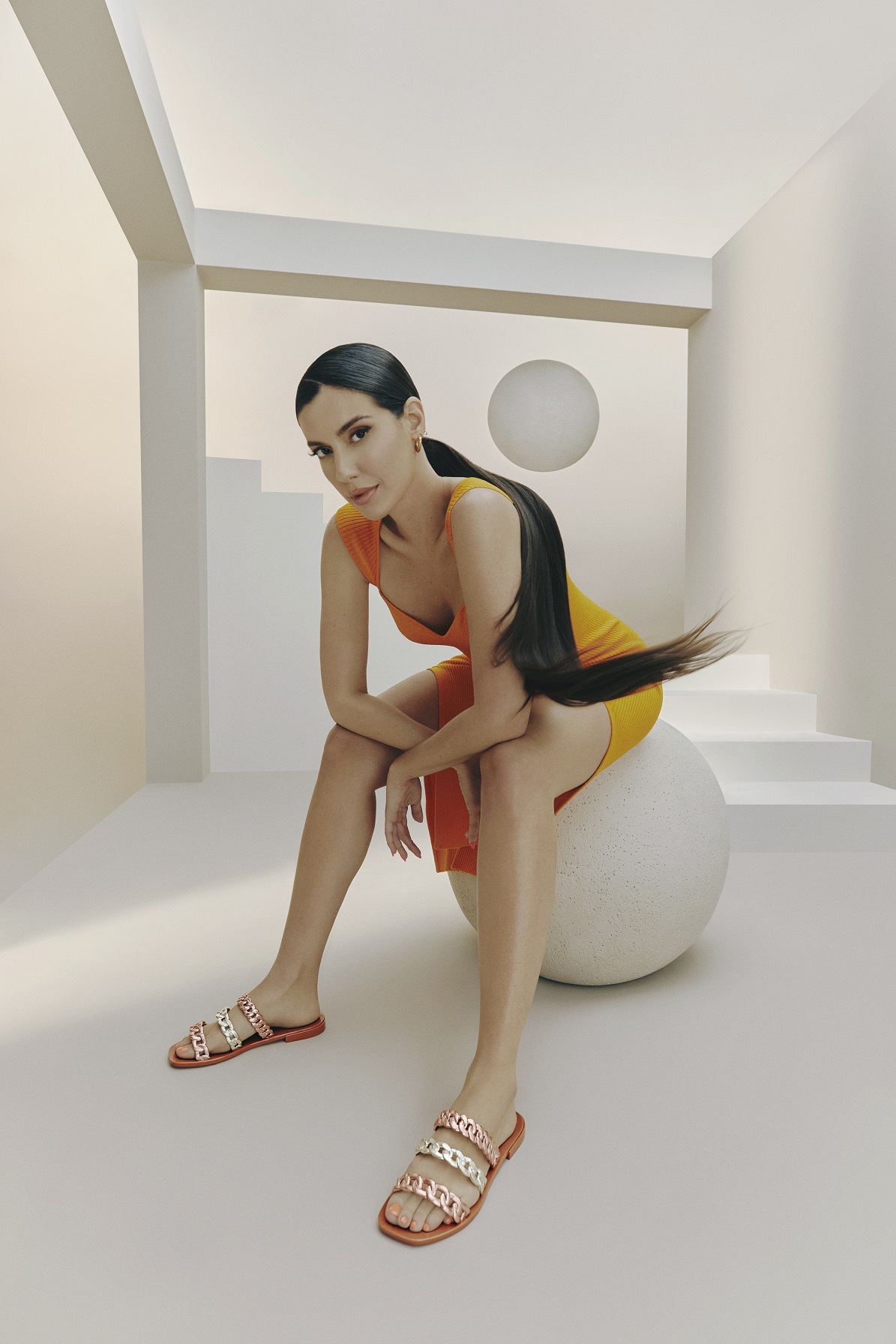 Sobre a coleção, ela reforça a preferência por modelos baseados nas tendências mais chiques e dos metais. “É uma tendência que veio bem forte em muitas marcas que a gente admira. Então, a gente trouxe um pouco disso, mas com uma cara mais Brasil, pra gente usar muito no verão também. Um dos modelos que mais gosto é o que vem com uma espécie de tornozeleira metalizada, veste muito bem!”, ressalta.