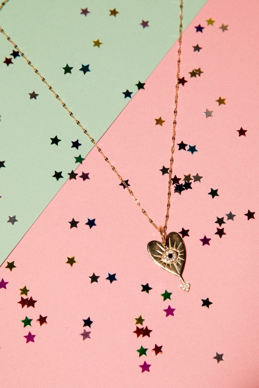 Para fazer um mix de símbolos, desenhos dos signos do zodíaco também podem sem encontrados em pingentes redondos e esculpidos em diamantes. Destacam-se também as pulseiras em ouro amarelo com frases e as rivieras coloridas.